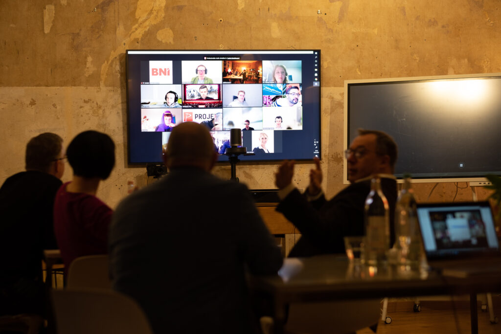 Der Kyffhäuser21 bietet einen schönen Rahmen. Der Kyffhäuser21 macht aus einer hitzigen Debatte eine warme. In langweiligen Momente laden die Wandbilder zum Verweilen ein. Per Videokonferenz zugeschaltete Experten wie Handwerker, Architekten frischen die Runde auf.