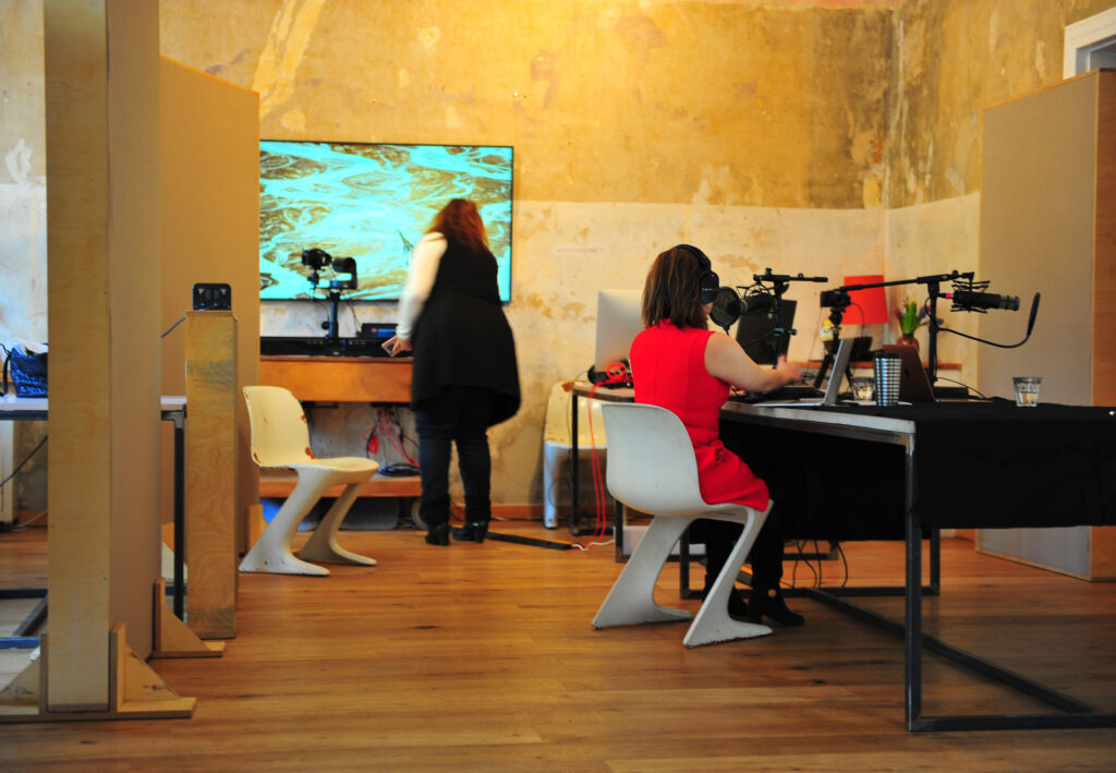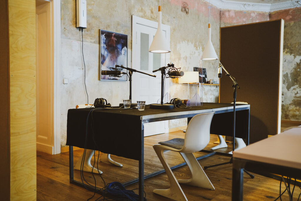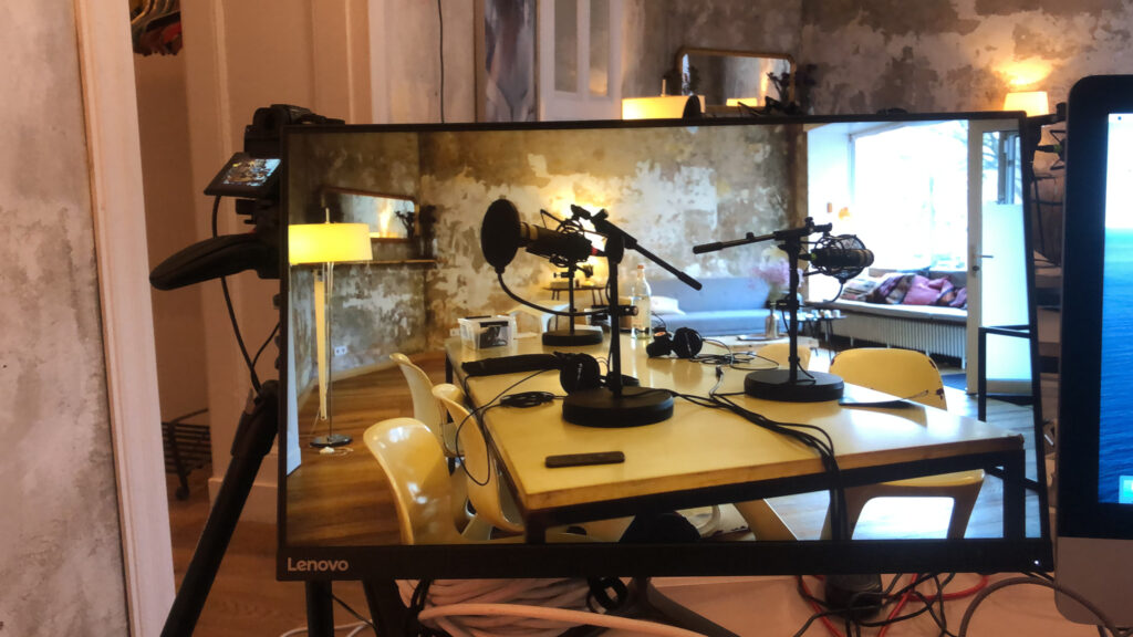 Zeigt das! Gerne im Kyffhäuser21. Dicke Kopfhörer, große schwarze Mikros, jede Menge Kabel haben wir auch. Unser dicke Decke, unsere mobilen dicken Absorberwände stellen sicher, dass keiner eurer Abonnenten merkt, dass ihr eurer Tonstudio oder euren Kleiderschrank verlassen habt. Wir versprechen Raum ohne nervigen Raumklang in der Aufnahme. Dafür sorgen hochwertige Komponenten, gute Akustik und nicht zuletzt unser Techniker, der schon ein paar Tonstudios gebaut hat. Zum Vodcast fehlt jetzt nur noch das Video: Das ganze nehmen 2 Fujifilm XT  Kameras auf. Als drittes Bild kann noch das  Zoom-Bild eines Gastes in den Video-Switcher laufen. Fertig ist der Vodcast.