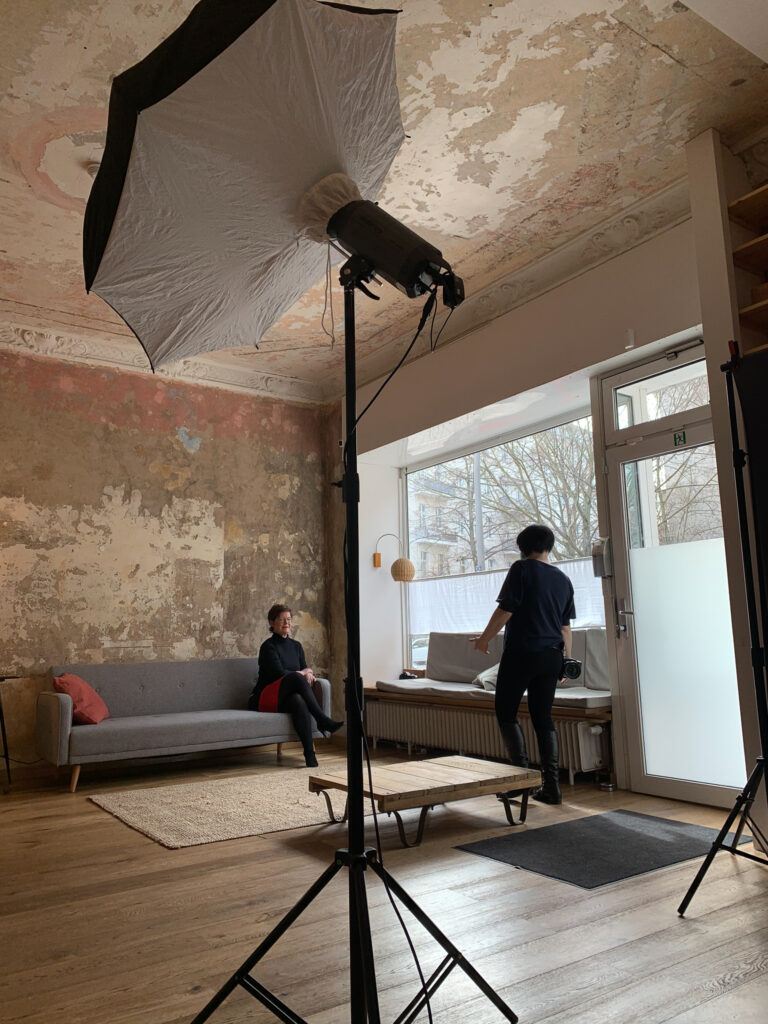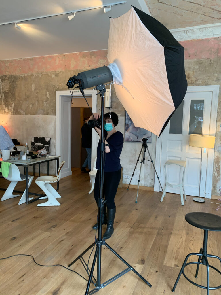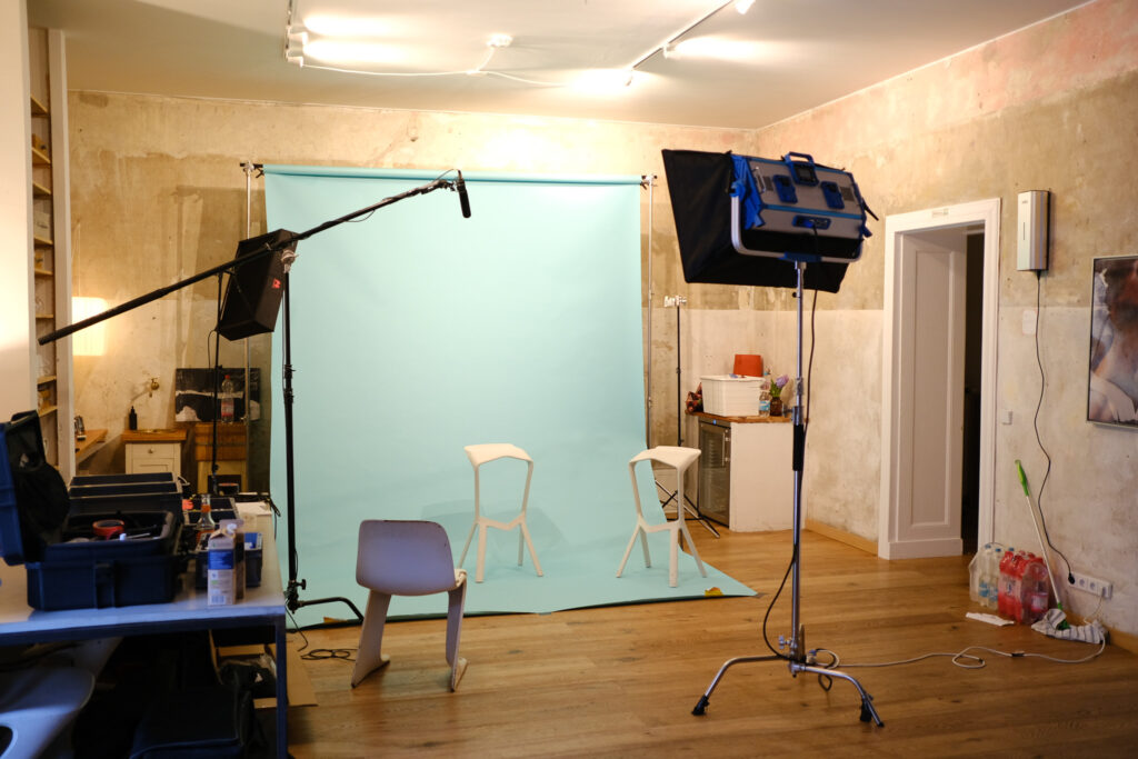 - … dank des rollbaren Videokonferenzsystem auch externe an dem Shooting teilhaben können.